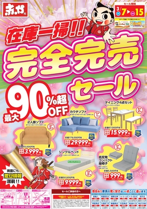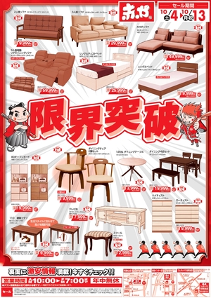 ソファー、ベッド、ダイニングセット・収納家具を「理由あり」の安さで提供。