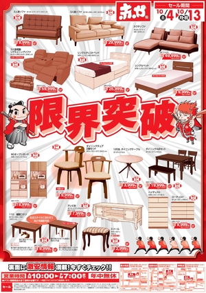 ソファー、ベッド、ダイニングセット・収納家具を「理由あり」の安さで提供。